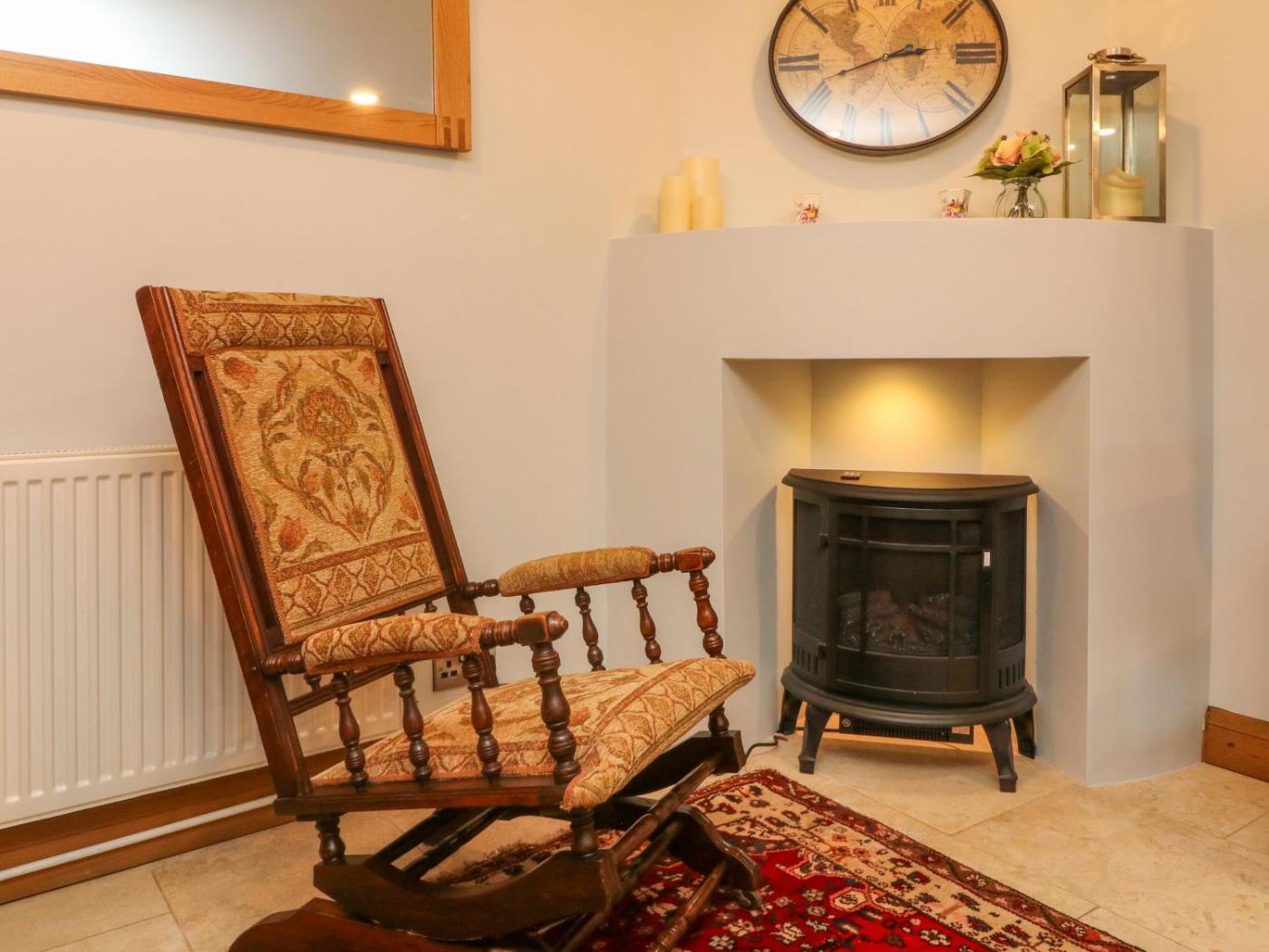 Holiday Home. The fireplace is the standout feature of this holiday home. This holiday home comes with 2 bedrooms, a seating area with a sofa and 1 bathroom with a walk-in shower. In the well-fitted kitchen, guests will find a stovetop, a refrigerator, a dishwasher and an oven. The holiday home features a washing machine, a dining area, a wardrobe, an electric kettle and a TV. The unit has 3 beds.