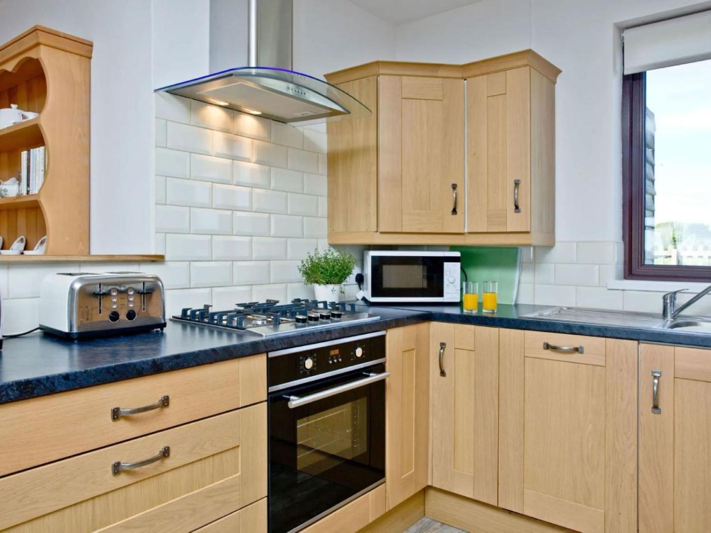 The holiday home has 4 bedrooms, a TV, a fully equipped kitchen with an oven and a microwave, and 2 bathrooms with a bath.