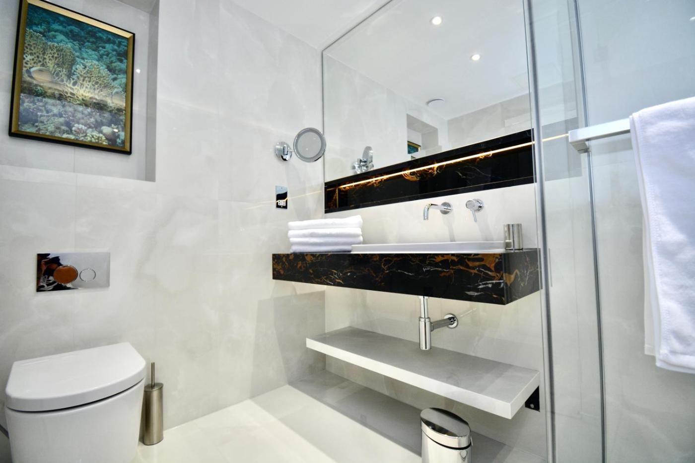 Deluxe Studio. The studio provides a dining area, a wardrobe, as well as a private bathroom boasting a walk-in shower and a bidet. The fully equipped kitchen has a stovetop, a refrigerator, a dishwasher and kitchenware. The air-conditioned studio features a flat-screen TV with streaming services, a washing machine, a tea and coffee maker, a seating area as well as city views. The unit has 2 beds. ;