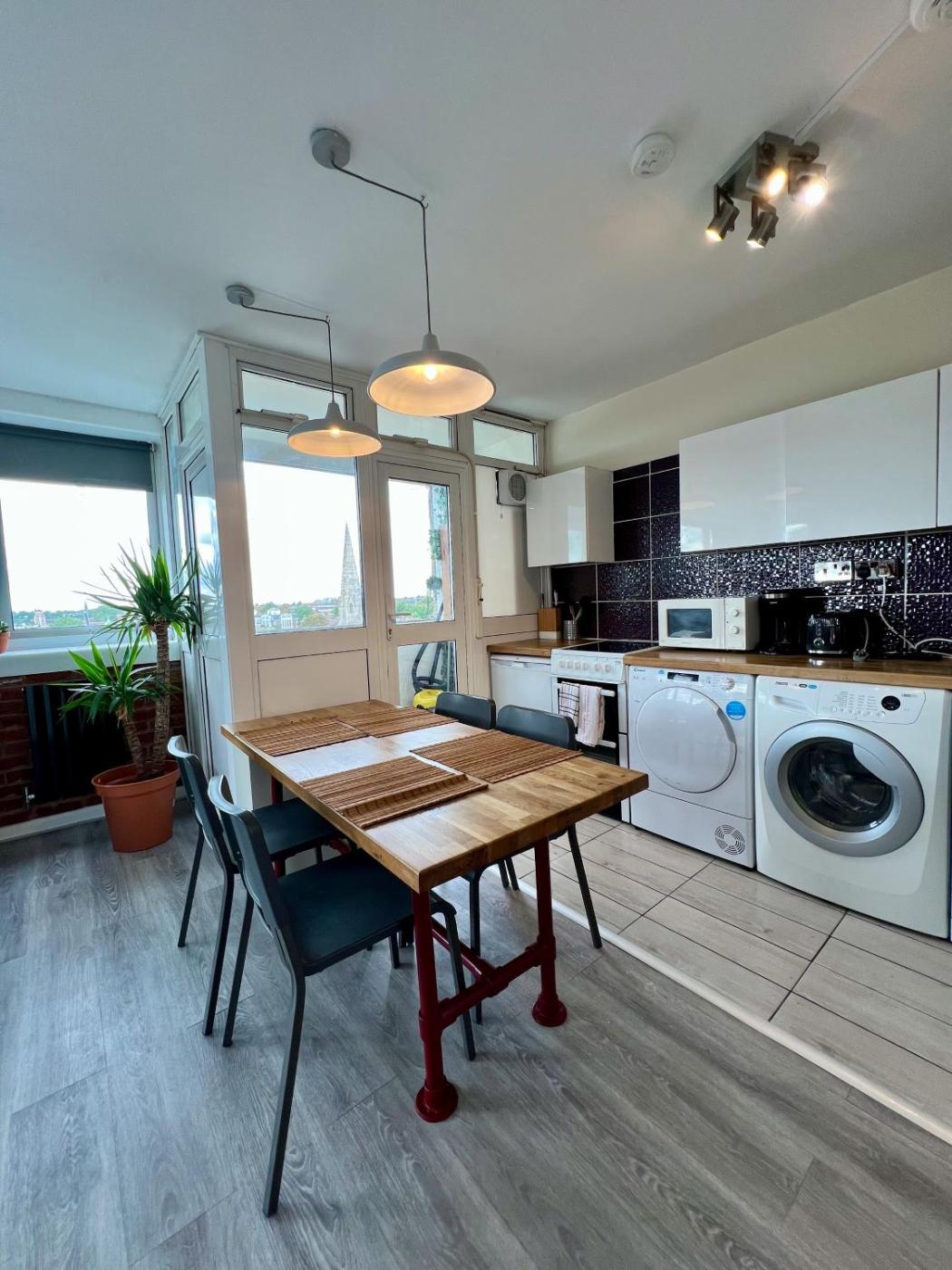Two-Bedroom Apartment. In the kitchen, guests will find a refrigerator, a dishwasher, a microwave and a toaster. The spacious apartment features a washing machine, a tea and coffee maker, a seating area, a flat-screen TV, as well as city views. The unit has 3 beds.