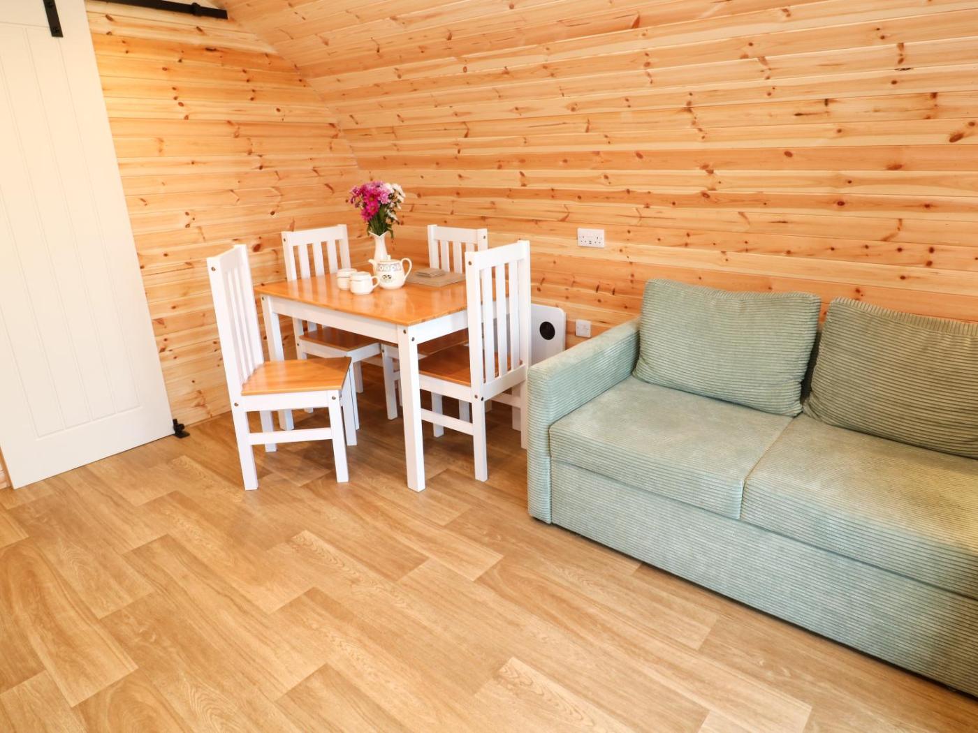 Holiday Home. This holiday home features 1 bedroom, a seating area with a sofa and 1 bathroom with a walk-in shower. The fully equipped kitchen has a stovetop, a refrigerator, an oven and a microwave. The holiday home features a dining area, a wardrobe, an electric kettle, heating, as well as a TV. The unit has 1 bed.