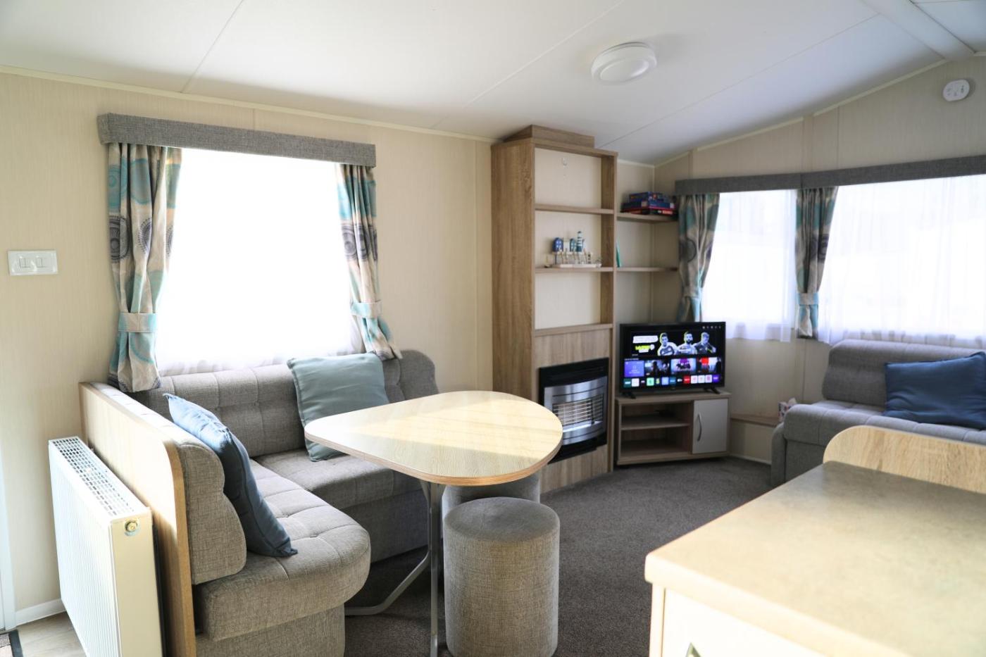 The campground includes 3 bedrooms, a living room, and 2 bathrooms with a shower. A flat-screen TV is offered.