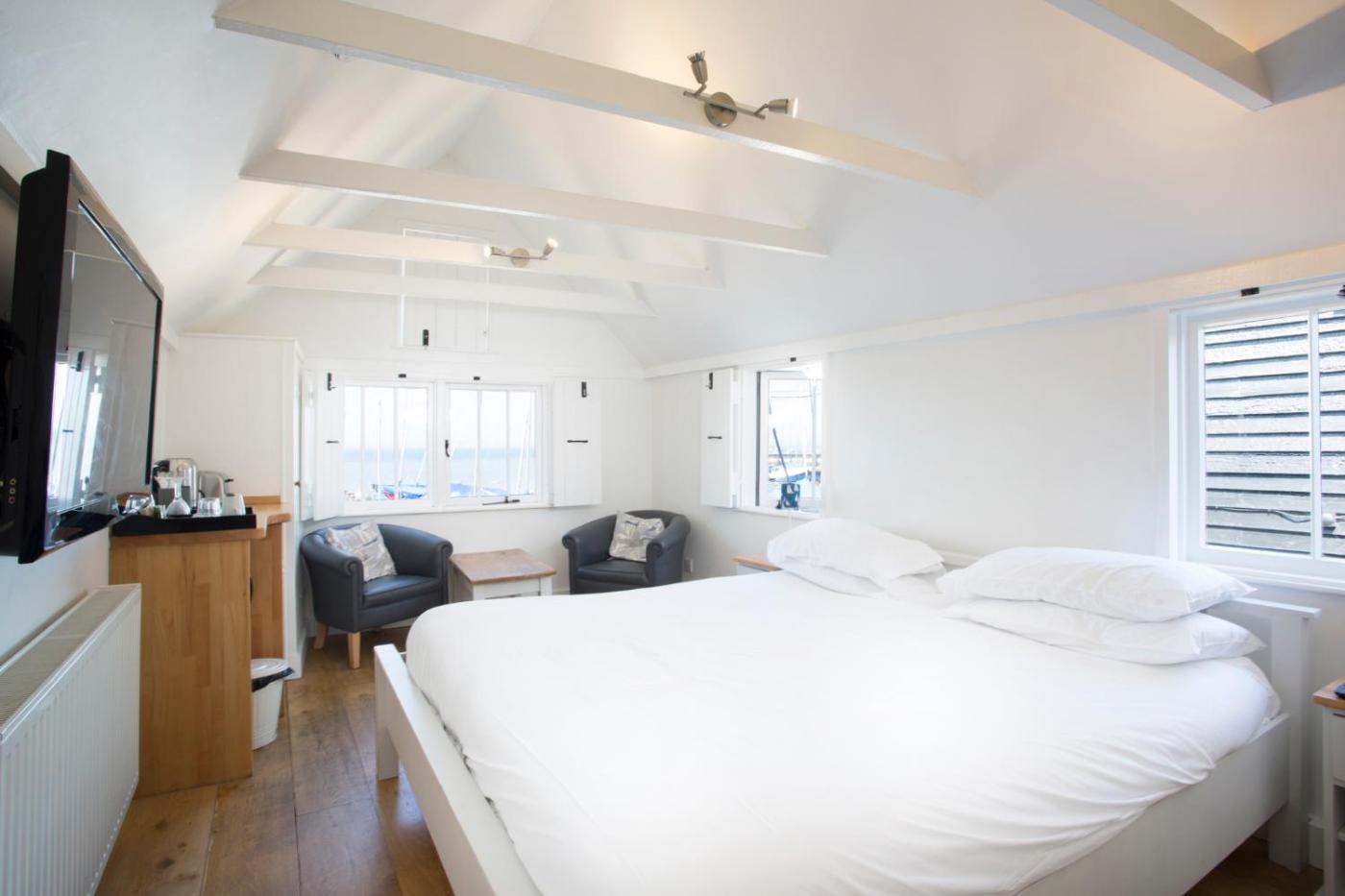 King Room with Sea View. HUT 1 is a one bedroom sea view hut on the first floor which has a king-sized bed, tea and coffee making facilities, small fridge and an en-suite shower room. There is parking on site for one vehicle. This Hut sleeps up to 2 adults. Please note this hut has a steep staircase. ;